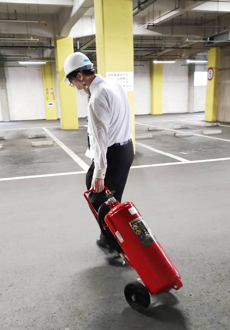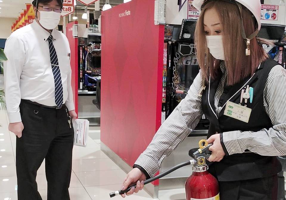 郊外の駐車場保有店舗は、8月に県内のパチンコ店で発生した車両火災事故を教訓として駐車場火災を想定した訓練も実施いたしました。
